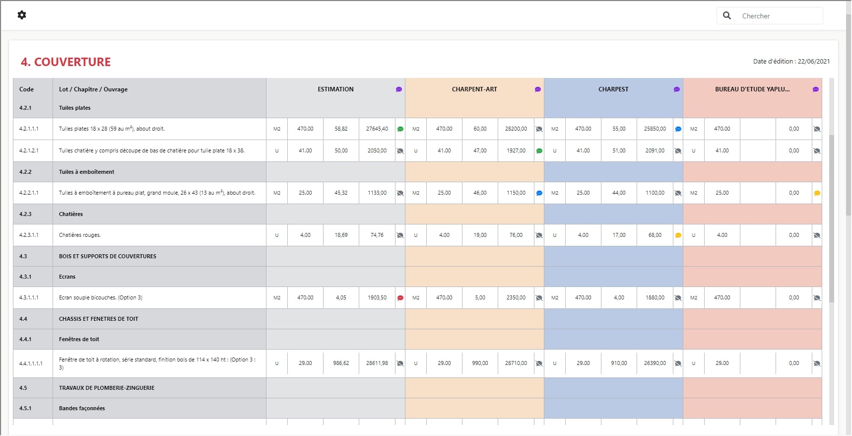 - Les codes des articles et titres des ouvrages sont identiques entre le DPGF et le comparatif offrant un meilleur contrôle de l’affaire.