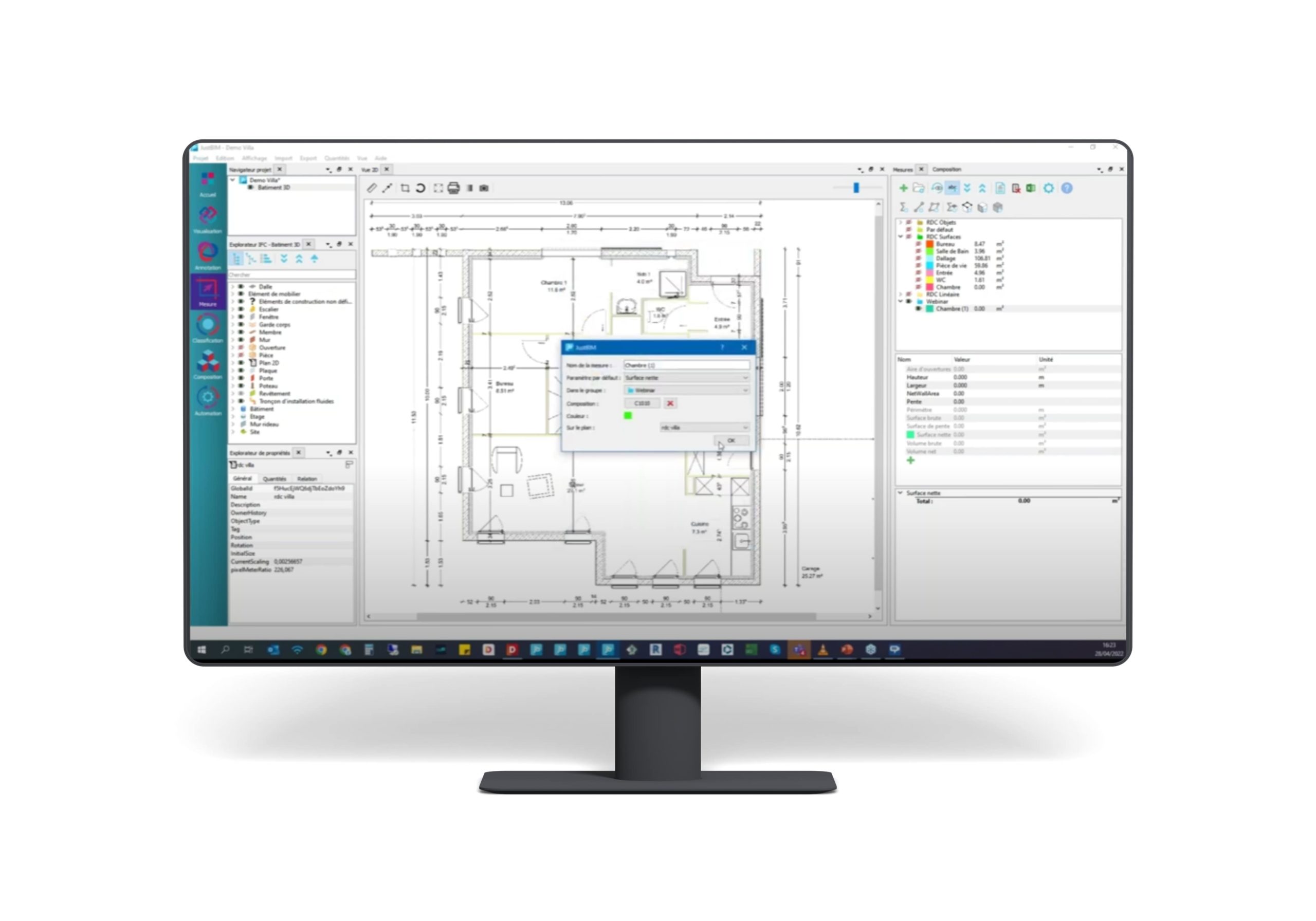 De la voirie, des réseaux fluides, des surfaces d’aménagement, de la structure gros œuvre ou métallique, des revêtements, des équipements non dessinés, etc. Métrez des éléments variés avec JustBIM !
