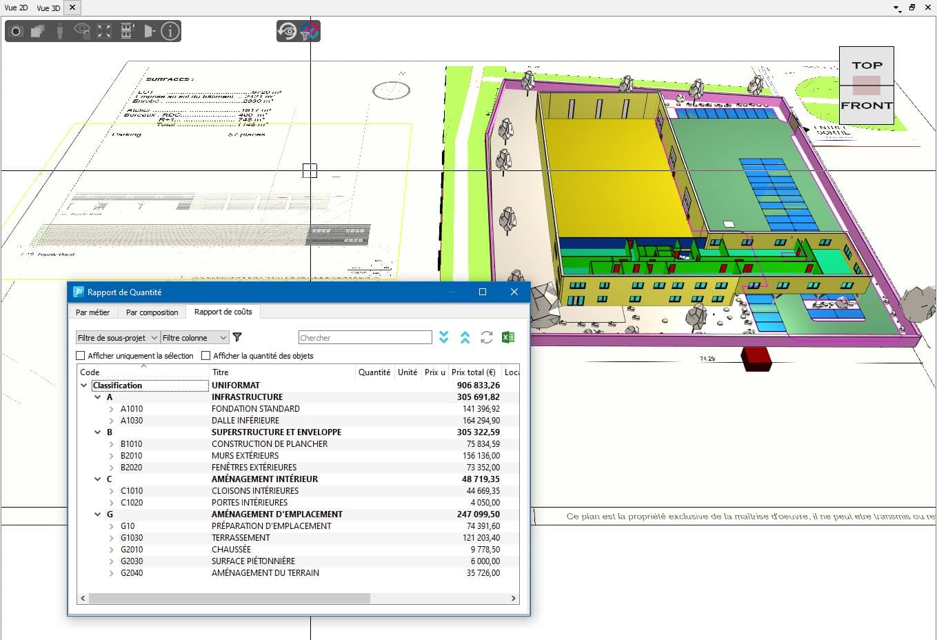 - Précision accrue : Les informations visuelles et les détails disponibles dans le Plan PDF et la maquette 3D vous permettent d’obtenir une estimation plus précise des coûts du projet.